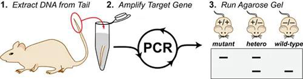 在以小鼠為模式生物進行科學研究的實驗室中,日常和基本的一個實驗就是提取它們的遺傳物質DNA(脫氧核糖核酸)進行基因型鑒定,檢測這些小動物的基因組中是否含有特定的DNA。為了能夠從小鼠身上提取足夠的DNA,要從它們身上取下足量的細胞用于實驗。為了盡可能減少對動物的傷害和方便試驗人員的操作,我們只剪下一小段鼠尾作為實驗樣品.