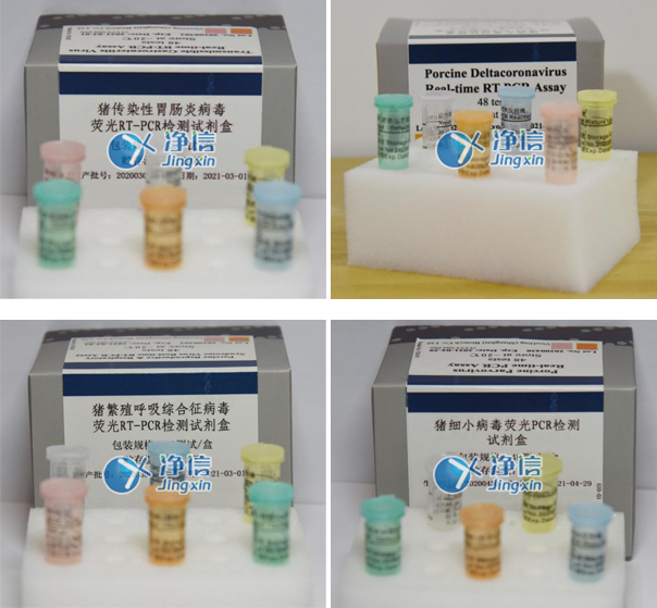 為了解決大型豬場對排查不明原因豬腹瀉的需要,本公司在分析了上述病毒大量國內外基因序列的基礎上,原創性地設計了獨特的引物和探針,開發了“豬傳染性胃腸炎病毒、豬流行性腹瀉病毒、輪狀病毒A型三重熒光RT-PCR檢測試劑盒和“輪狀病毒C型豬德爾塔冠狀病毒雙重熒光RT-PCR檢測試劑盒兩款試劑盒。